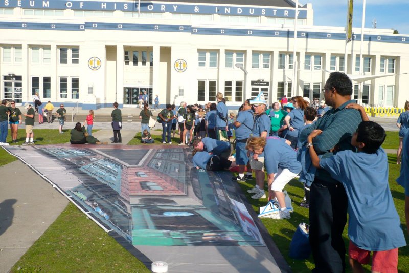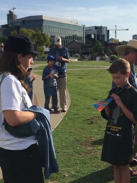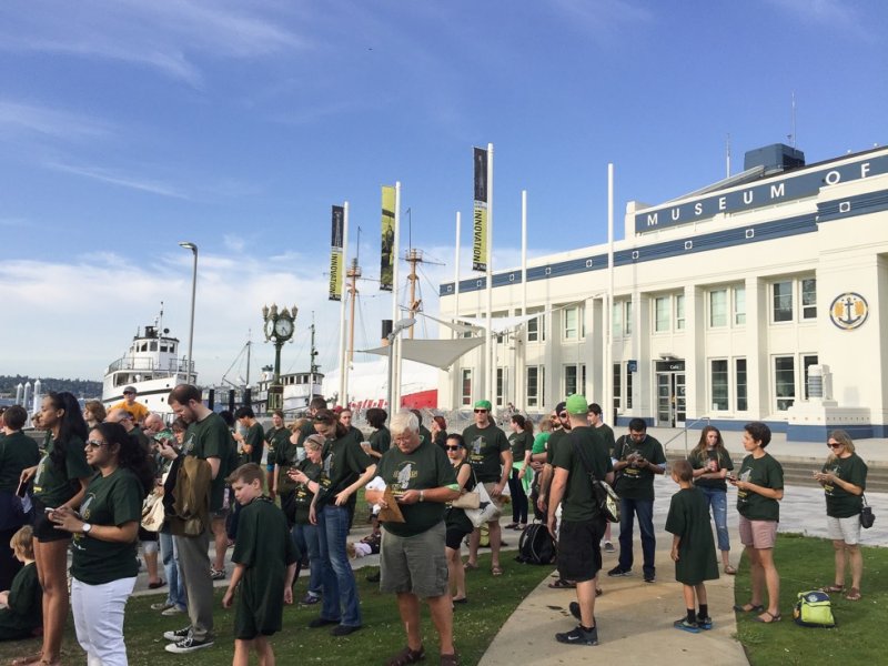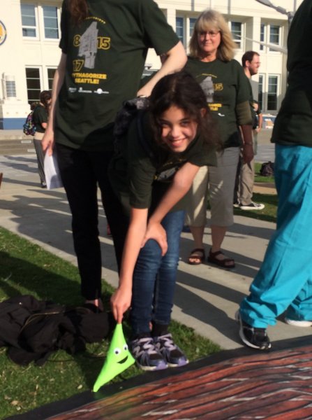 On Pythagoras Day 2015, MoMath and the Pacific Science Center brought an all-new MathHappenings to the city of Seattle! This collaboration took place in honor of Seattle’s historic Triangle Pub. The Triangle Pub was selected from triangular buildings around the country because its dimensions measure 8 meters x 15 meters x 17 meters — a Pythagorean triple that just happened to correspond with the date.